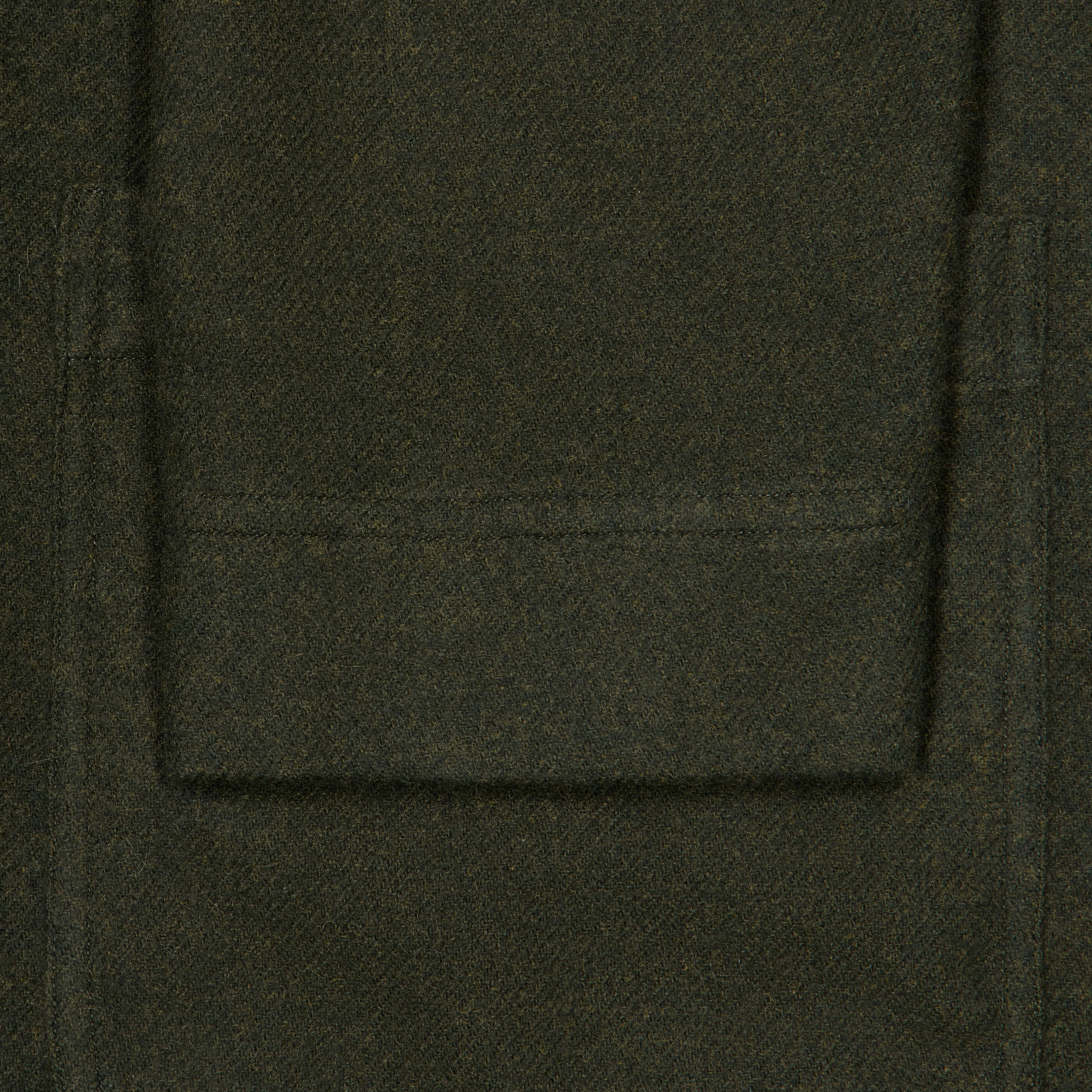 Our Chore jacket in its first ever Winter edition. Cut from English flannel, this unlined Loden green jacket has been finished with four patch pockets and real horn buttons. Wear it open as an overshirt, or buttoned-up in its own right. This is a great piece for the Autumn months, and a great tone to work alongside earthy and neutral tones. Crafted exclusively for Budd in England.
