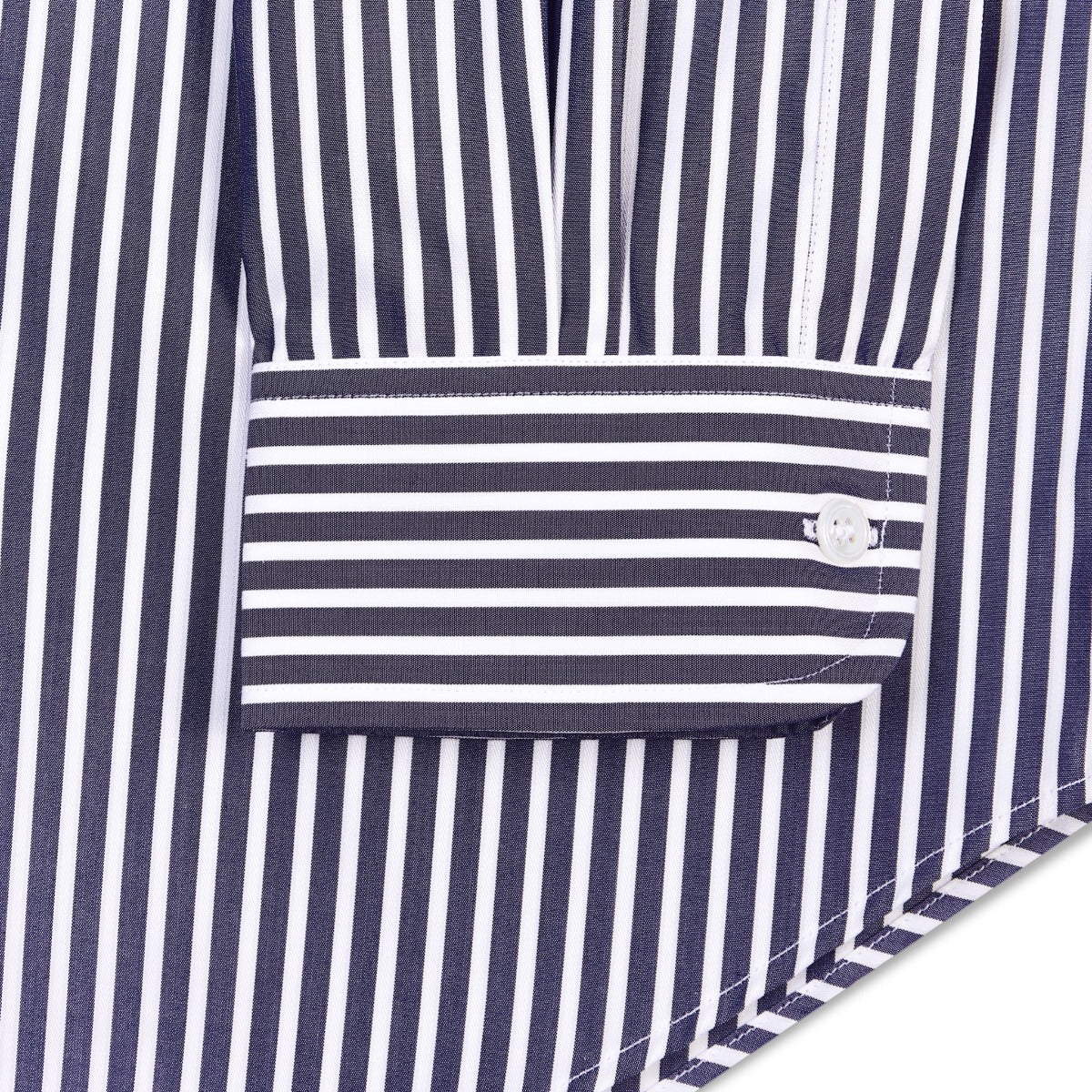 Our iconic Budd stripe is now available in our tailored fit. This edition has been styled to fit today’s modern work wardrobe and features our versatile semi-spread Bank collar, conceived to sit as well with a tie as without, and finished with a simple button cuff.