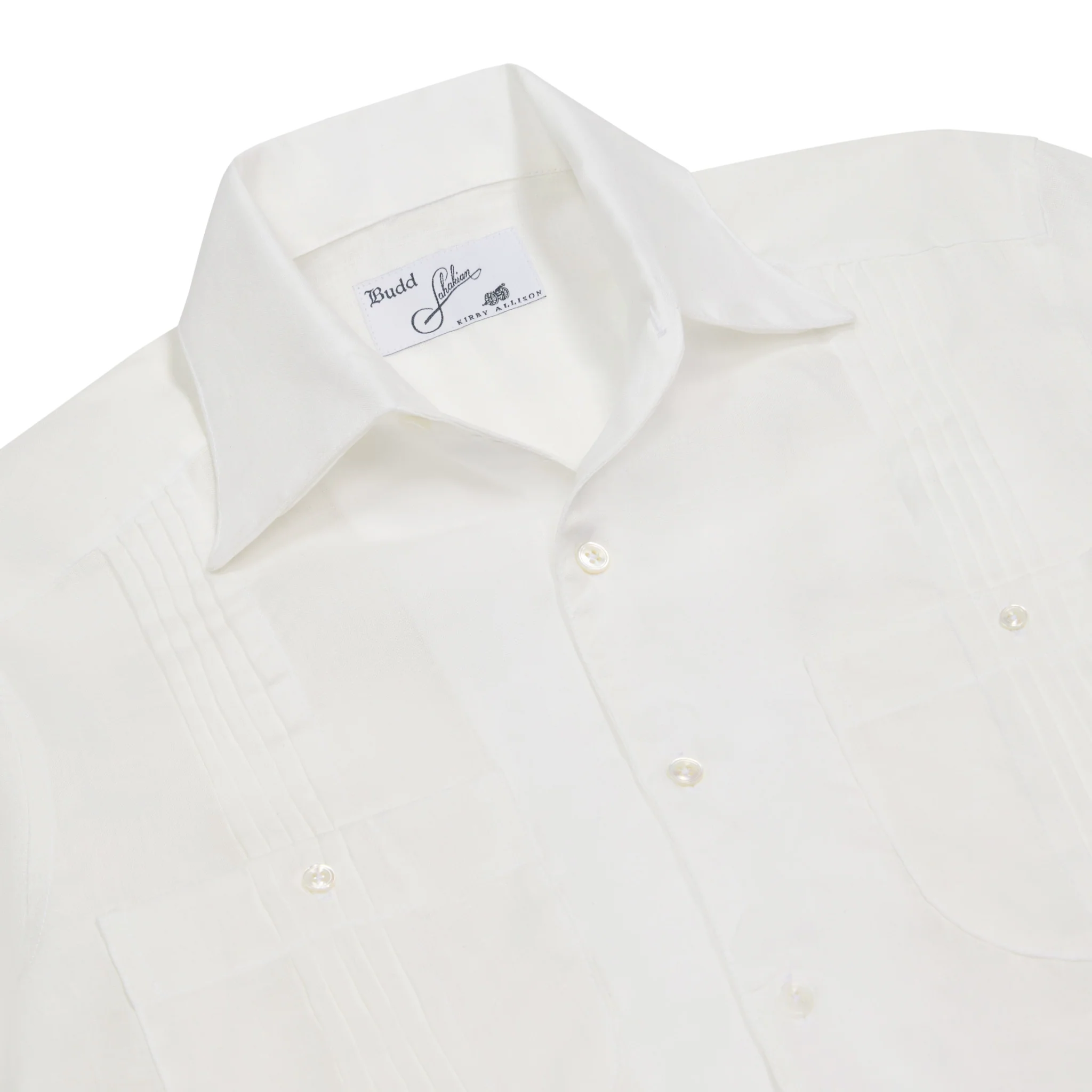 One of our most exciting collaborations yet, Budd is proud to present our new Guayabera shirt. Designed in partnership with cigar heroes, Kirby Allison and Eddie Sahakian, this Guayabera in white is cut from the finest quality linen and crafted to Budd’s exacting shirtmaking standards. It speaks to the tastes and passions of so many of our customers!Â