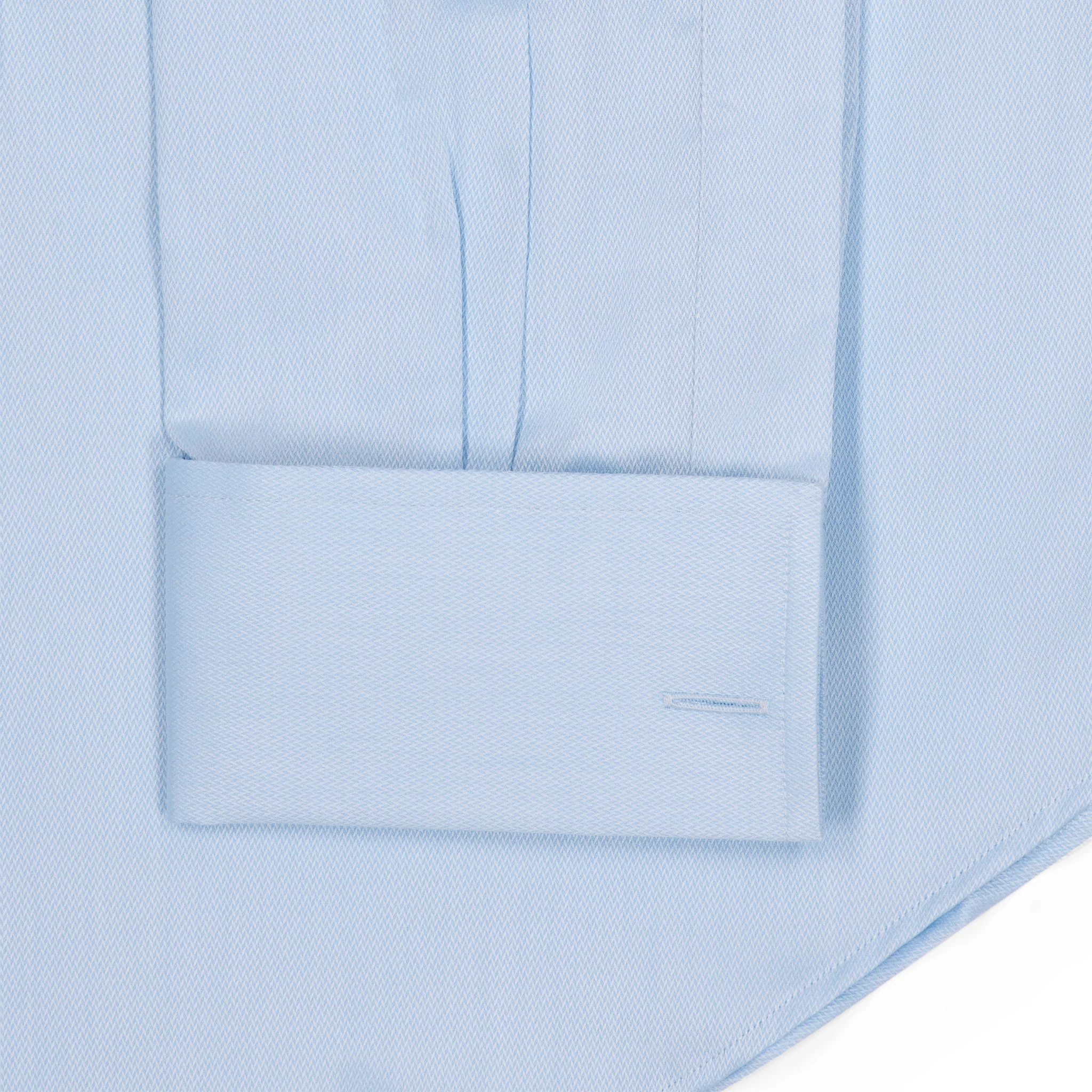 Tailored Fit Fine Piquet Double Cuff Shirt in Sky Blue