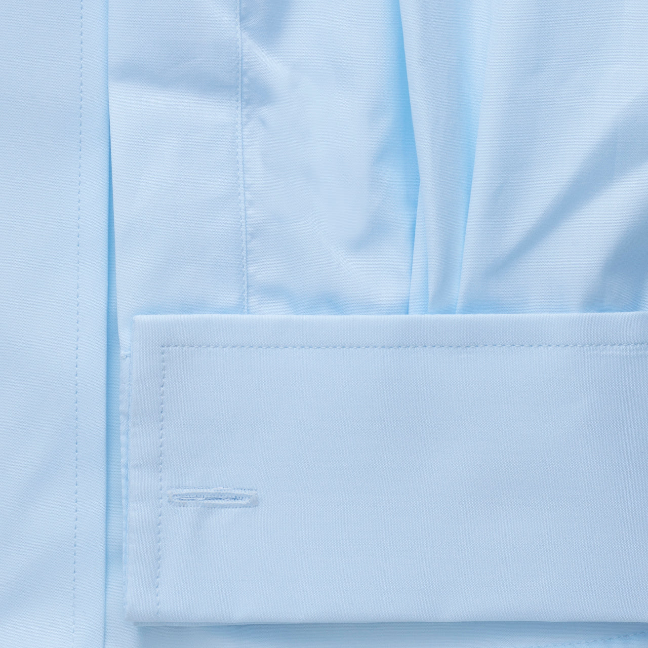 Tailored Fit Plain Poplin Double Cuff Shirt in Sky Blue